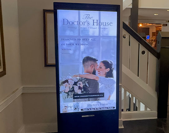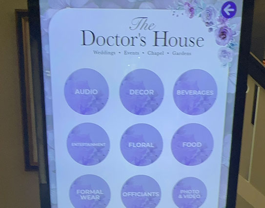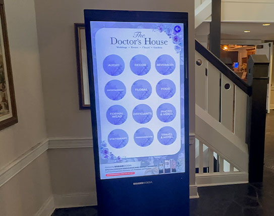 Brand M3dia hooked up Doctor’s House with our interactive kiosks, making it super easy for attendees to explore all the vendors on-site. From caterers and florists to photographers and bridal shops, our touch kiosks made navigating each category seamless. Guests loved being able to see everything at their fingertips, diving into the details of each wedding rental and supplier in a beautifully interactive way.